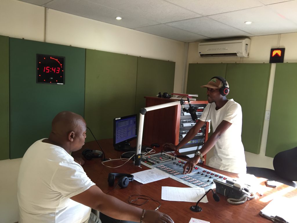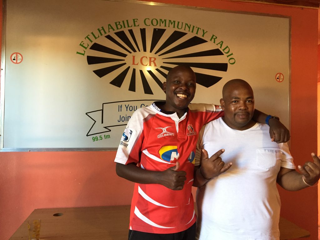 Dj MafuthA at Lehlabile Community Radio with presenter Percy-B in North West Province